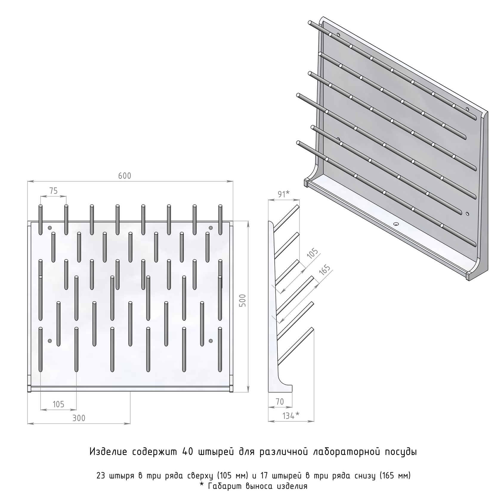 600х500 мм, полипропилен, 40 штырей диаметром 10 мм.