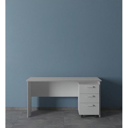 Стол письменный выполнен из ламинированной ДСП. Состоит из столешницы, двух боковых опор и поперечной царги. Толщина столешницы - 16 мм. Дополнительно может комплектоваться подкатными тумбами.