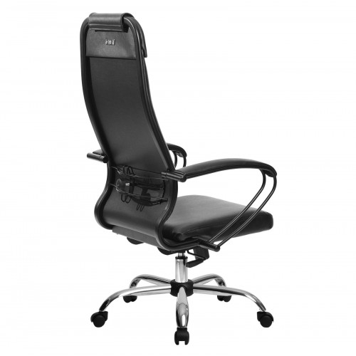 Спинка: высокая с мягким подголовником, черное полимерное покрытие каркаса ширина 475 мм;