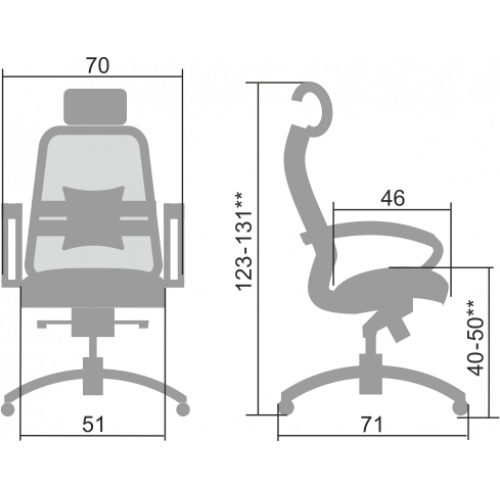 **Высота сиденья в верхнем и нижнем положении может быть изменена, в зависимости от модели применяемого газ-лифта.