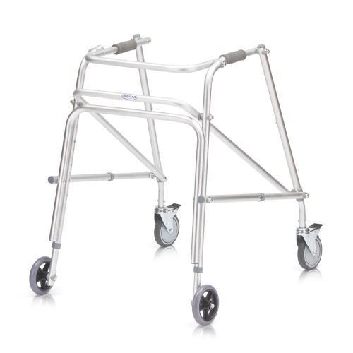Изготовлены из алюминия. Имеют мягкие накладки на поручни. Регулируются по высоте с шагом 2,5 см. Оснащены четырьмя колесами. Передние колеса имеют тормоз.