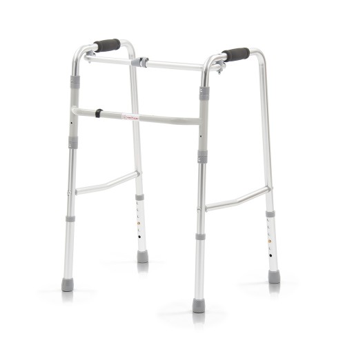 Легкие и удобные в эксплуатации. Ходунки удобно использовать как в "нешагающем", так и "шагающем" режимах. В первом случае, можно приподнимать изделие во время остановки и опираться на него при ходьбе. Во втором случае, пользователь может переставлять поочередно правую и левую стороны ходунков во время движения, что немаловажно для пользователей с ослабленными руками. Модель легко складывается и раскладывается. Ходунки занимают мало места при хранении и транспортировке.