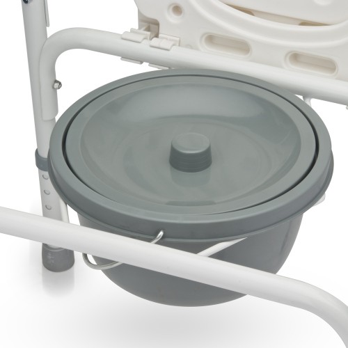 Рама кресла-туалета изготовлена из металла и имеет полимерное покрытие.